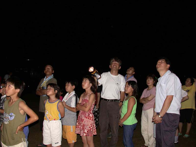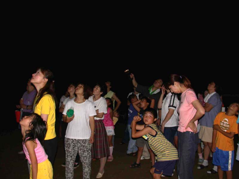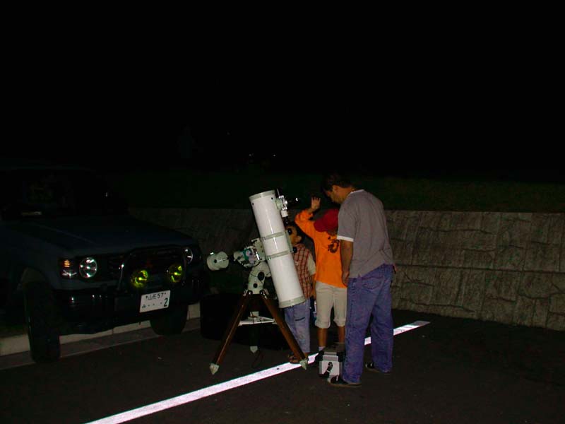 星空教室が始まるころ多少の晴れ間が 今しか無いばかりに星座の説明と火星 ベガなどを観測しました。 |