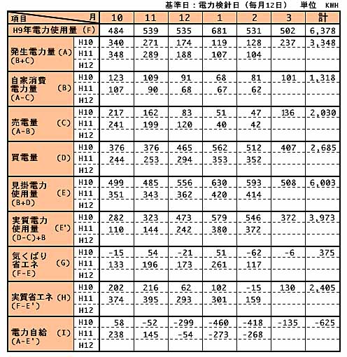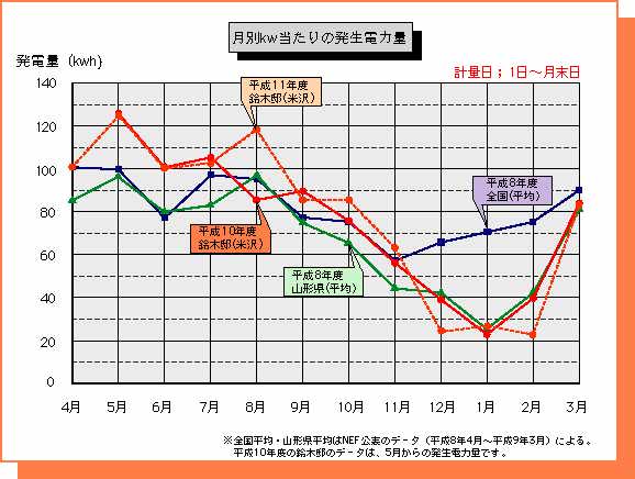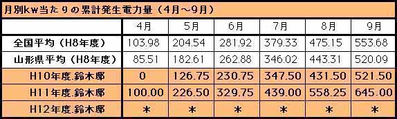(注)10年度鈴木邸の発電量は5月からのため1ヶ月分不足しているが、11年4月分を代入すると939.75kwhとなり全国平均に近い実績と推定される。