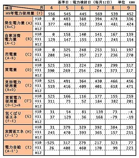 | 鈴木宅・太陽光発電、発生電力(可載量)量調査表(10.11年度) |