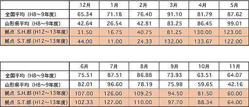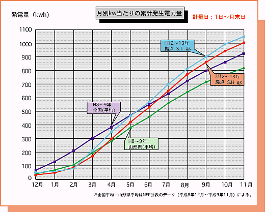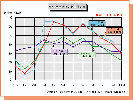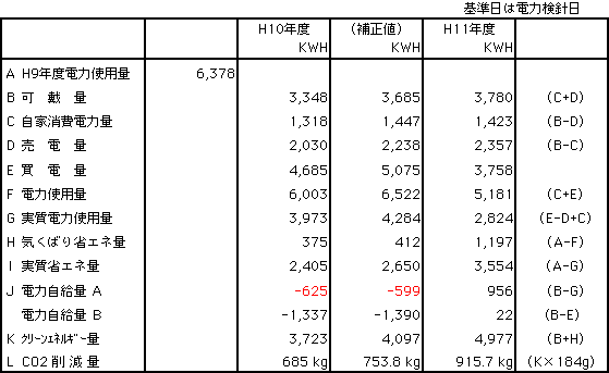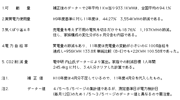 (注)10年度S・H邸の発電量は5月からのため1ヶ月分不足しているが、11年4月分を代入すると939.75kwhとなり全国平均に近い実績と推定される。