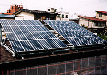 1.太陽電池モジュール 架台設置状況 2.太陽電池モジュール取付状況(1) 3.太陽電池モジュール取付状況(2) 4.太陽電池モジュール取付状況(3) 6.接続箱取付状況 7.変換装置取付状況 8.東北電力立ち合い検査 9.電力メーター取付状況 |